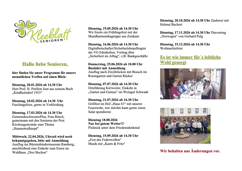 Heimat für offene, lebensfrohe und gastfreundliche Menschen, mitten im Gäu. Gelegen in der weinfrohen Südpfalz und der klimatisch milden, sonnenverwöhnten Rheinebene. Das wirkt sich auch auf die Menschen und ihr Gemüt in unserem Ort aus. Erkunden sie unser Dorf auf der Homepage und noch besser, kommen Sie vorbei und überzeugen Sie sich selbst. Zum Beispiel auf unserer Kerwe, die seit 1521 am Wochenende nach Fronleichnam gefeiert wird. Oder bei den vielfältigen weiteren Veranstaltungen übers Jahr.